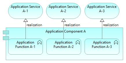 当用例被标识为应用程序服务时,它们可以在其他图表中(例如在分层视图中)进一步用作目标应用程序的功能元素。换句话说:应用服务代表应用的行为(功能)。如对使用案例分析的详细信息,请参阅 ArchiMate食谱,链接。