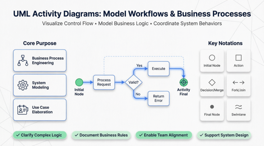 This guide is intended for software architects, business analysts, and system designers seeking to model complex workflows and business processes using UML Activity Diagrams. All visual assets and definitions are sourced from Visual Paradigm’s official UML Gallery.