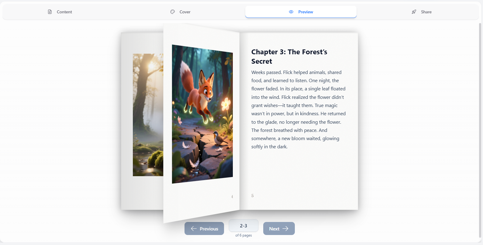 The AI-Powered Flipbook Maker simplifies the process of creating, designing, and sharing digital books. Whether you’re an author, educator, or marketer, this tool empowers you to bring your ideas to life with AI-generated content and stunning visuals.