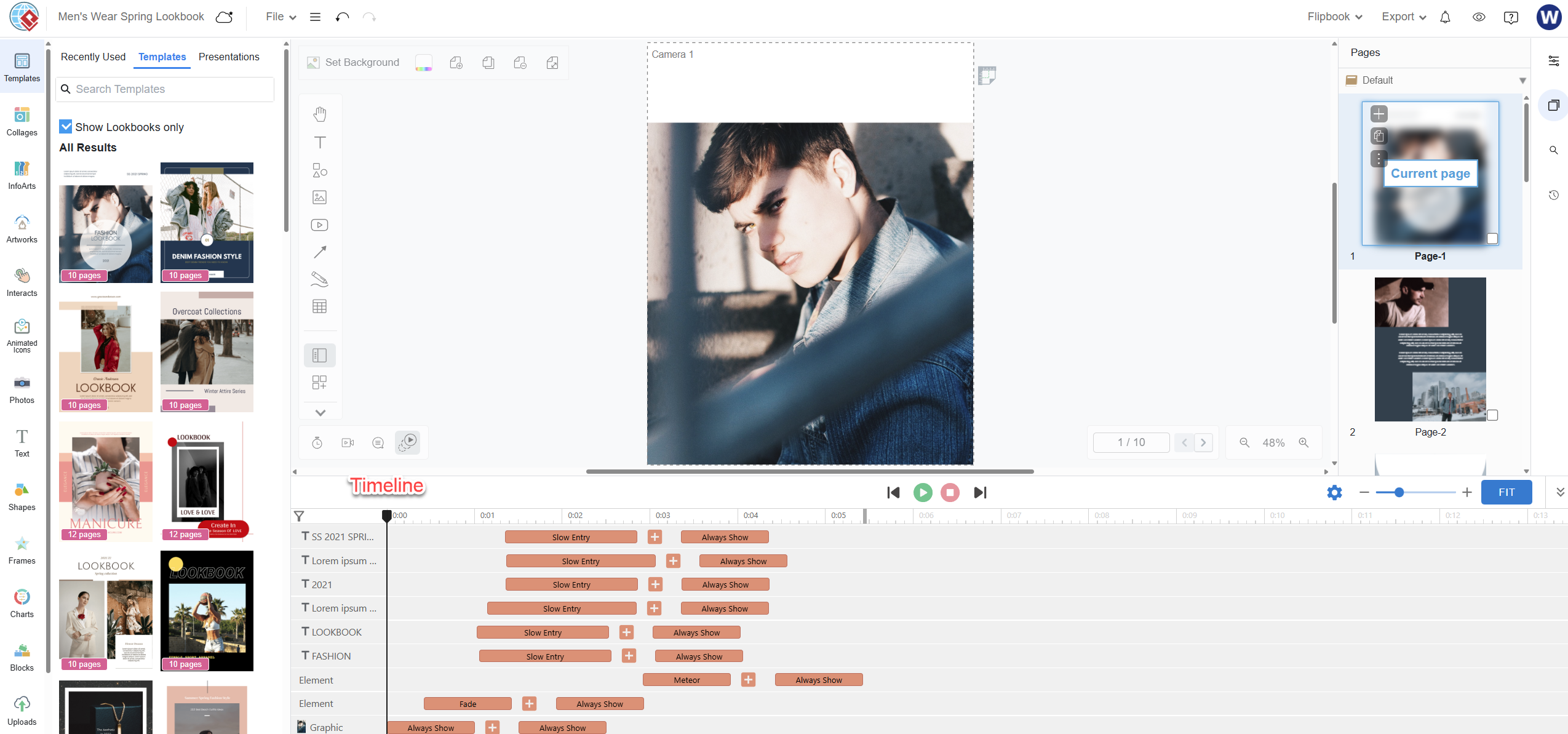 Try a fashion lookbook template, experiment with the timeline, and watch your design come alive.